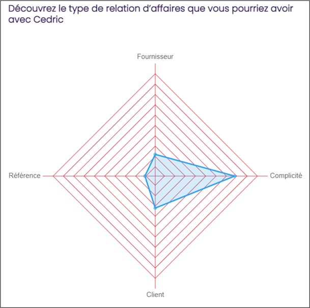 Parmi les nombreux types de jumelage offerts par PairConnex, les Clans d’affaires utilisent la fonction de « Groupement », qui vise à séparer les participants en groupes compatibles. Au moment de leur inscription, les participants doivent d’abord remplir un questionnaire qui a été conçu pour comprendre leurs besoins et objectifs. Les données cumulées servent à calculer un score de jumelage entre chaque participant. Ces scores sont calculés sous quatre différents axes de collaborations professionnelles :